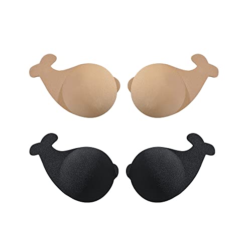MIVAIUN 2 Par Axelbandslös BH, Osynlig Push Up Rygglös BH, Silikon Självhäftande BH, Återanvändbar Push Up Självhäftande BH, för Klänning och Bröllop, Hudfärg, one size
