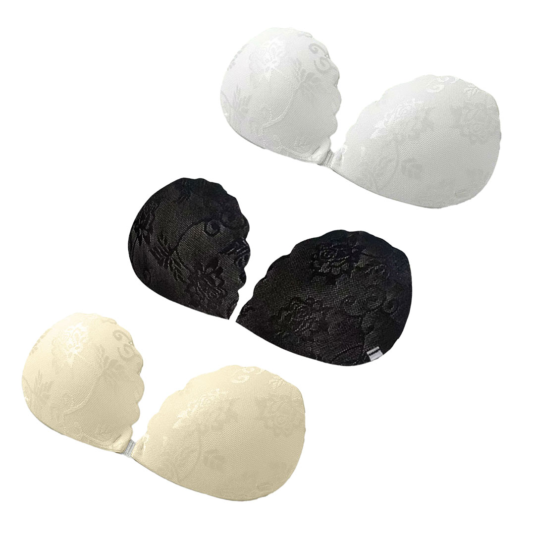 FDEETY Silikon BH Axelbandslös Push-Up Tape Klistermärken Osynlig Underkläder Lyft Bralette Vattentät Sömlös, Svart-beige, L