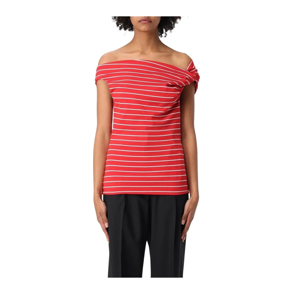 Msgm, Blusar & Skjortor , Dam, M, Bomull, Randig, axelbandslös topp i rött