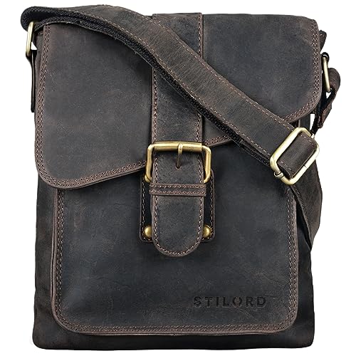 STILORD "Mattia" liten axelväska i läder för män – vintage messengerväska för iPad 9,7 tum och surfplattor 10,1 tum – axelremsväska i äkta läder, Mörk – brun, Medium