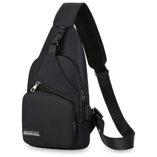 Aucuu slingväska, axelväska med USB-laddningsport, för män och kvinnor, lätt axelremsväska för vandring, cykling och shopping, Svart, 1