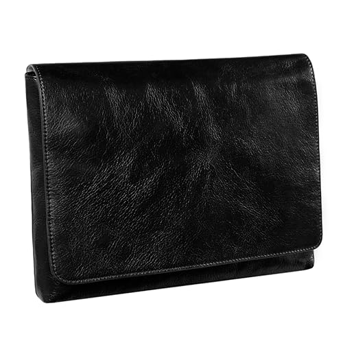 Time Resistance Axelremsväska i Läder för Män – Crossbody-väska – Fullnarvsläder – Axelväska med Plats för Surfplatta (Svart)