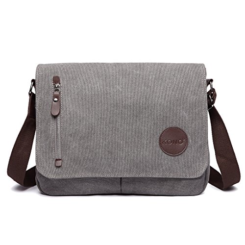 Kono Canvas Messenger axelväskor för män 34,3 cm unisex vardaglig axelremsväska resväska för skola resor arbete vandring, Grå, L, Retro