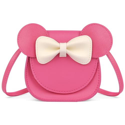 Ainiv Flickor rosett över kroppen, axelhandväska, mini magnetisk klaffväska, justerbar rem axelväska för flickor barn småbarn tonåringar tonåringar, Liten mus öra rosett-ros, 14 x 13 x 4,5 cm