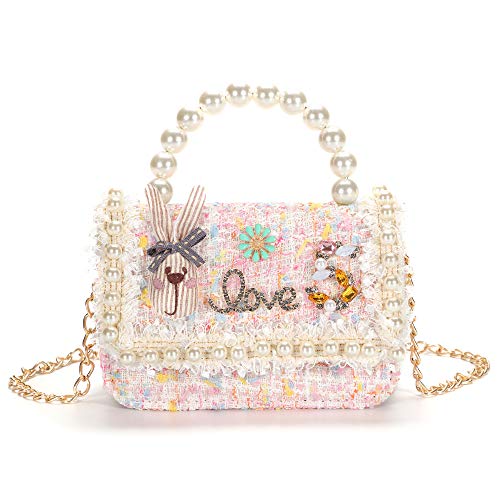 Axelväska för barn, småbarn, flickor, söta axelväskor, rosett, prinsessa, axelväska, flickor, 2–5 år, Rosa pärla, S, Söt, söt