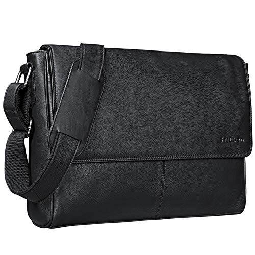 STILORD Oskar 15 tum äkta läder laptop axelväska vintage affärsstil, Svart, L, Skolväska