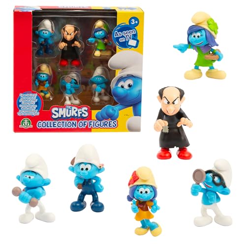 Smurfarna, set med 6 figurer 5,5 cm, inklusive 1 Azrael-exklusiv figur, leksaker för barn från 3 år, PUF142