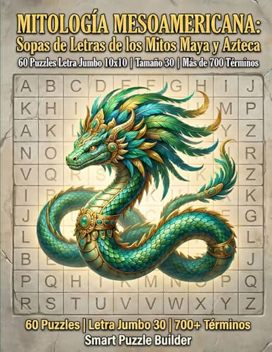 MITOLOGÍA MESOAMERICANA: Sopas de Letras de los Mitos Maya y Azteca: 60 Puzzles Letra Jumbo 10x10 | Tamaño 30 | Más de 700 Términos