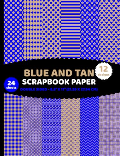 Blue and Tan Scrapbook Paper: Double Sided Geometric Patterns 24 Sheets of Light Brown and Azure for Crafts - 12 Designs - 2 Sheets/Design - 8.5"x11"