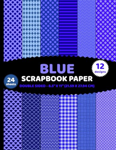 Blue Scrapbook Paper: Double Sided Geometric Patterns 24 Sheets of Sky, Azure, Ocean Sea Water, Sapphire Coloured for Crafts - 12 Designs - 2 Sheets/Design - 8.5"x11"