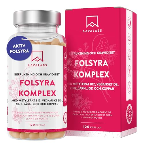 Folsyra för kvinnor som vill bli gravida | Kosttillskott för graviditet folsyra 400 mcg | Vitaminer för graviditet och amning | m. B-12, D-vit., zink, jod, koppar, järn-Prenatala vitaminer för kvinnor
