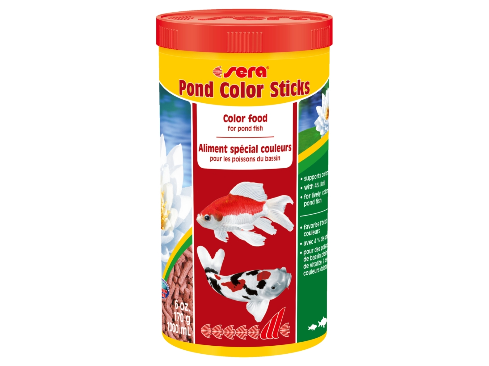 Sera Pond Color Sticks, Dammfisk, Torr Fiskmat, Pellets, Vitamin A, Vitamin B1, Vitamin B2, Vitamin C, Vitamin D3, Vitamin E, Stor, Medium, Liten, 28%