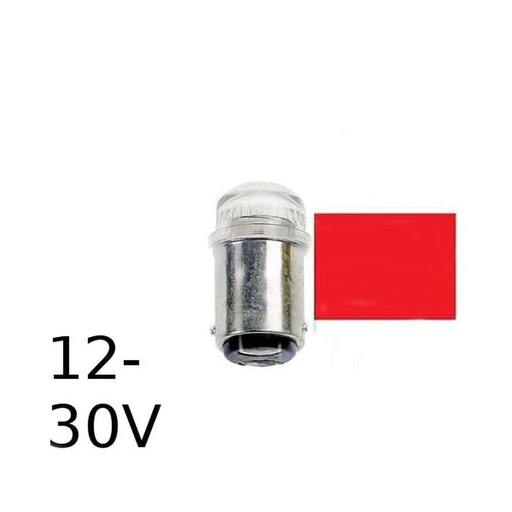 Röd LED signallampa T14x30 16lm Ba15d 0,2W 12-30V