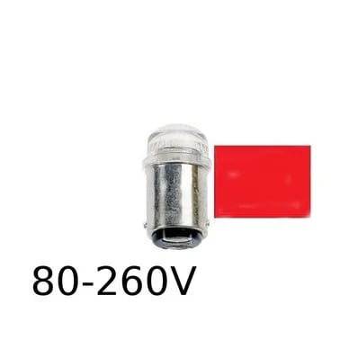 Röd LED signallampa T14x30 5lm Ba15d 0,4W 80-260V