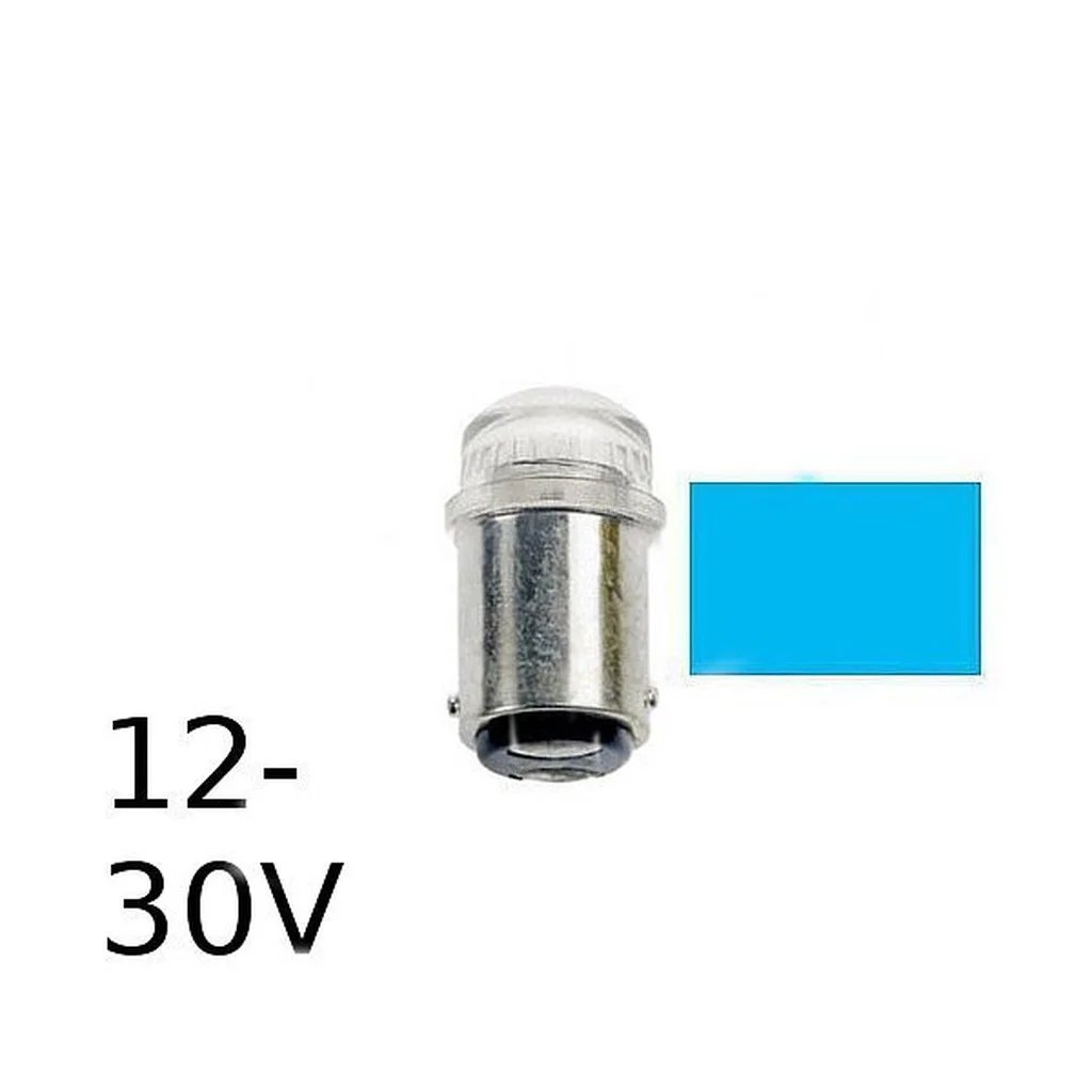 Blå LED signallampa T14x30 16lm Ba15d 0,2W 12-30V
