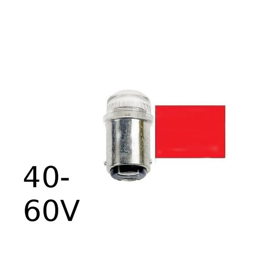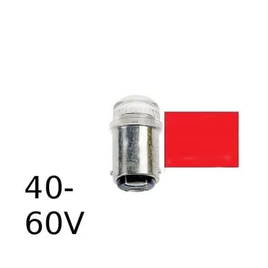 Röd LED signallampa T14x30 10lm Ba15d 0,4W 40-60V