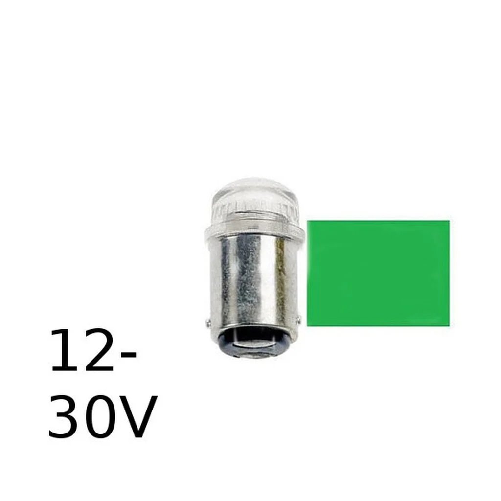 Grön LED signallampa T14x30 16lm Ba15d 0,2W 12-30V
