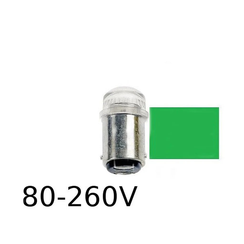 Grön LED signallampa T14x30 5lm Ba15d 0,4W 80-260V