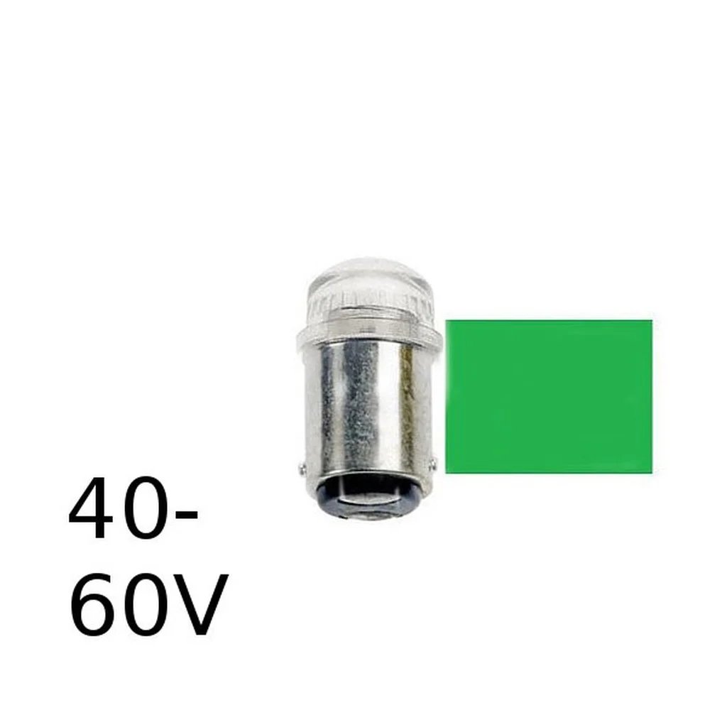 Grön LED signallampa T14x30 10lm Ba15d 0,4W 40-60V