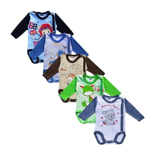MEA BABY Unisex baby body med långa ärmar och tryck, 5-pack. Baby body pojkar Baby body flickor (74, pojkar)