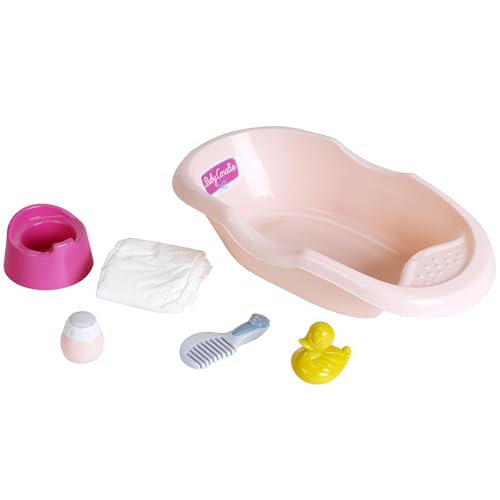 Simba 105562128 - New Born Baby Badkar med Tillbehör för Dockor - Set från New Born Baby med Badkar, Potta, Badanka, Flaska och Övriga Accessoarer, 39 cm, Från 12 månader, Slumpmässigt Urval