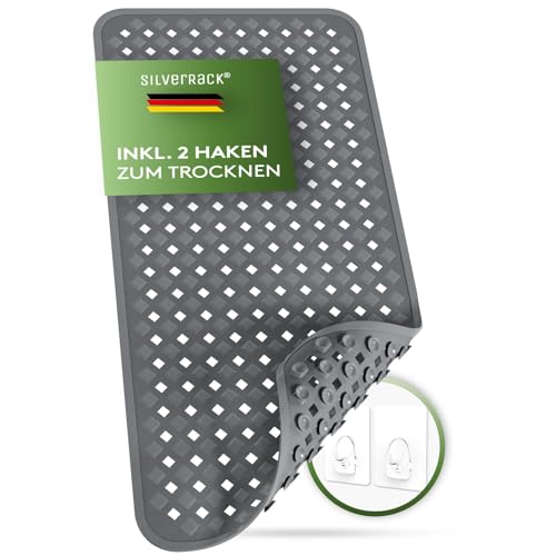 SilverRack Dusch- och badkarsmatta DermaSensitivo Diamond 100 % BPA-fri (mörkgrå) – badkarsinsats halkfri 88 x 40 cm för barn och baby – halkfri matta badkar