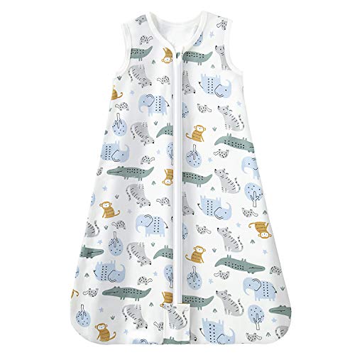 Mosebears sleeping bag baby summer sleeping bag 0.5 tog, baby sleeping bag 100% cotton, breathable baby sleeping bag (animal paradise, M (6-12 months))