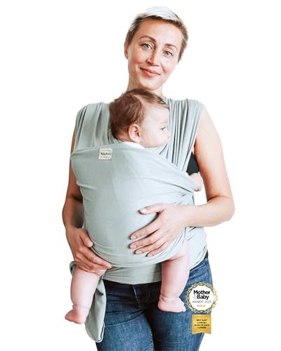Bärsele för nyfödd till småbarn, 3,2–15,9 kg – mjuk stretchig rem för baby – säkerhetstestad – handsfree baby wrap bärare – sele för nyfödd (salvia)