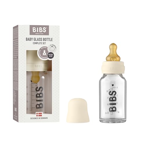 BIBS Baby Glass Bottle. Antikolik. Rund sugdel i naturgummilatex. Främjar naturlig amning, Complete Set - 110 ml, Ivory