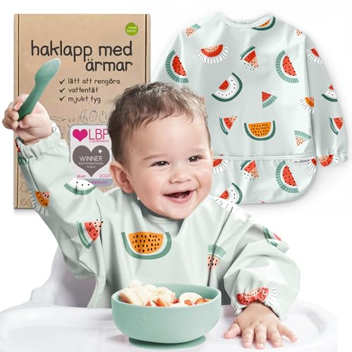 Nombear Baby Avvänjning Bibs med Ärmar 6 Månader och Uppåt - Vattentät Baby Bibs med Ärmar för Baby Led Avvänjning
