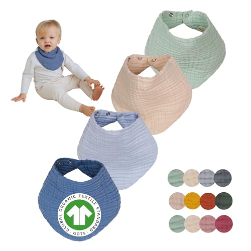 Konssy Muslin Baby Bibs 10 Pack Baby Bandana Drool Bibs 100% Cotton for Unisex Boys Girls,10 Solid Colors Set for Teething Drooling