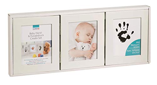 Glorex 6 8070 413 – kreativt set för baby hand- och fotavtryck, med ram för 3 bilder, giftfri stämpelkudde och papper, idealisk som födelsemeddelande