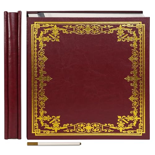 Vienrose Fotoalbum självhäftande scrapbook-album med skyddande film spara bilder permanent gör-det-själv linne omslagsalbum för familj bröllop baby 32,5 × 33,5 cm 60 ark röd