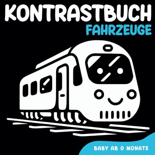 Kontrastbuch baby ab 0 Monate: kindgerechten Fahrzeugen, kontrastreiche Schwarz-Weiß-Bilder zur visuellen Entwicklung und stimulation der Babyaugen von Geburt an.