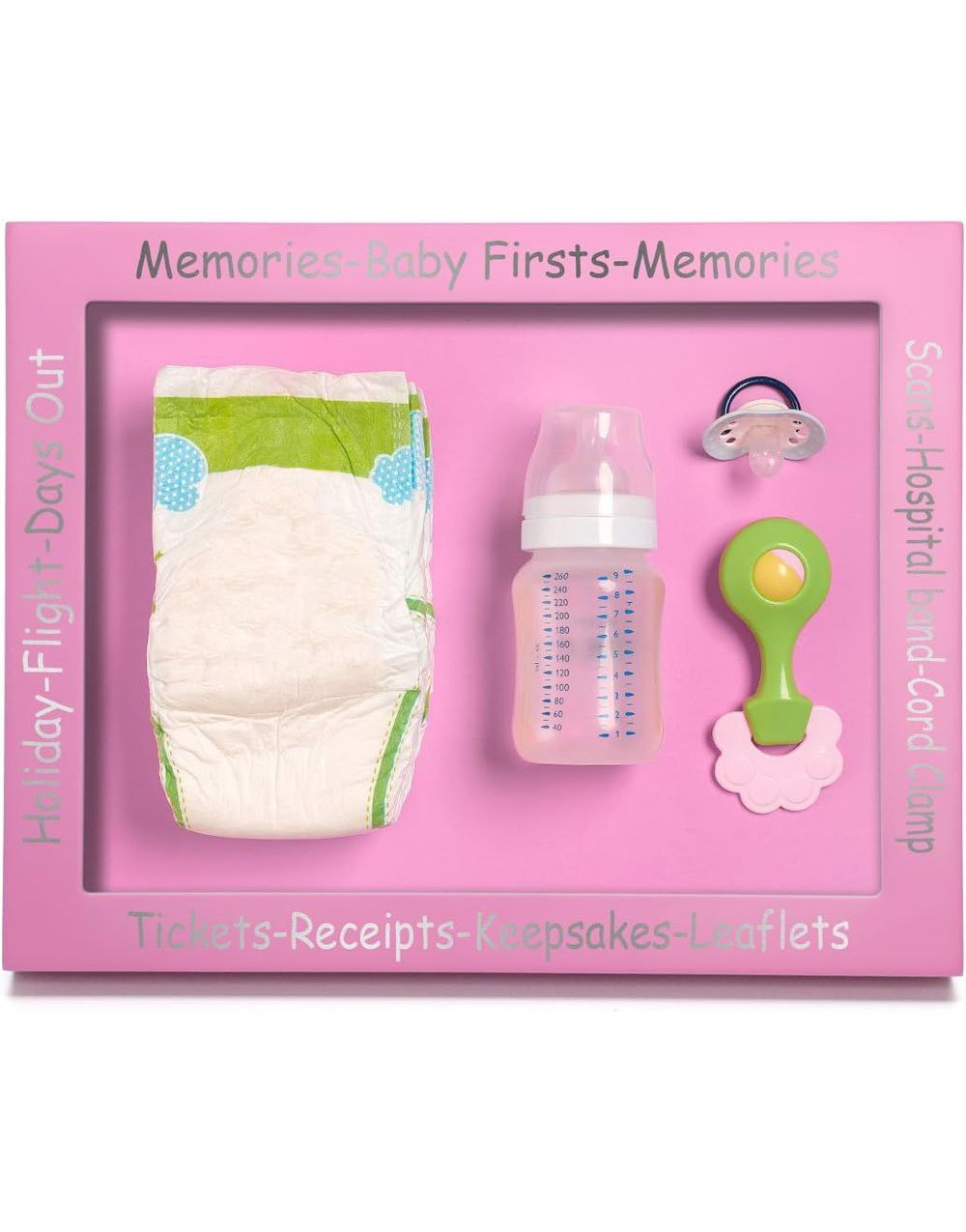 Rössler 14571928001 – fotolåda baby flicka med magnetisk stängning, för bilder på 13 x 18 cm, rosa, 1 styck