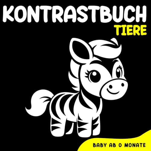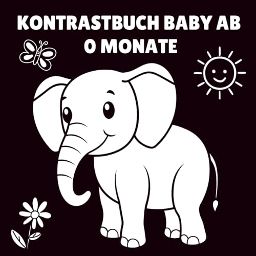 Kontrastbuch baby ab 0 Monate: Süße Tiere, kontrastreiche Schwarz-Weiß-Bilder zur visuellen Entwicklung und stimulation der Babyaugen von Geburt an.