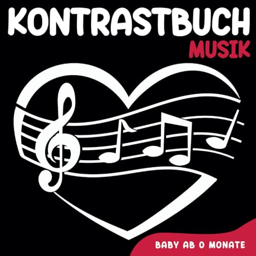 Kontrastbuch baby ab 0 Monate: Musik und Musikinstrumente, kontrastreiche Schwarz-Weiß-Bilder zur visuellen Entwicklung und stimulation der Babyaugen von Geburt an.
