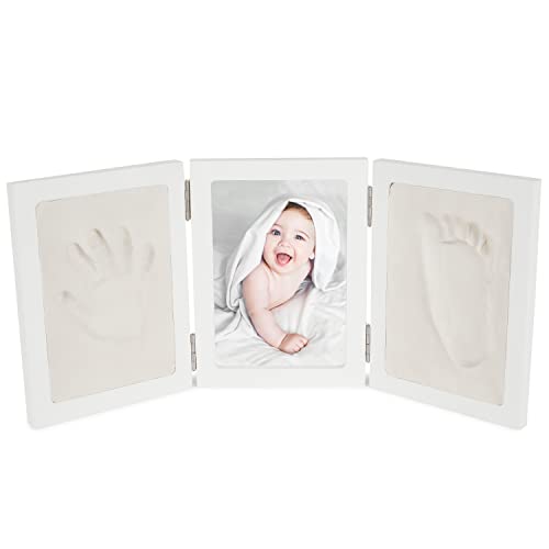 Bieco Set för gipsavtryck baby hand och fot | komplett babyavtrycksset med 3D-bildram av trä | Bilder set med ram för handavtryck baby | gibsavtrycksset händer | set med fotavtryck baby