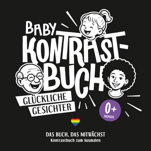 Baby Kontrastbuch GLÜCKLICHE GESICHTER – das Buch, das mitwächst. Schwarz-Weiss Kontraste für Babys ab 0 Monate: Hochkontrast-Bilder für Babys von 0–6 ... von Montessori und‚ ‘Oje, ich wachse!‘