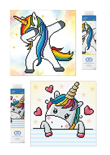 Pracht Creatives Hobby Dotz 69506 Diamantmålning, bilder för barn och vuxna, gör-det-själv-set med motiven Uni Dab och U Baby, ca 31 x 10 cm stor present och pysselset, flerfärgad