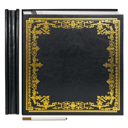 Vienrose Fotoalbum självhäftande scrapbook-album med skyddande film spara bilder permanent gör-det-själv linne omslagsalbum för familj bröllop baby 32,5 × 33,5 cm 60 ark svart