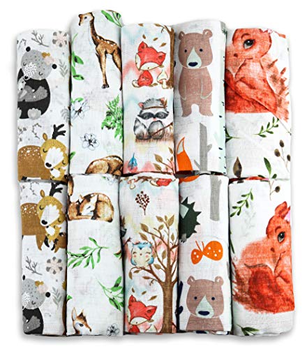 FENSILO - Muslinblöjor – Muslindukar – 10-pack 70 x 80 cm – tygblöjor, tillverkad i EU, testad för skadliga ämnen – baby blöjor – djur