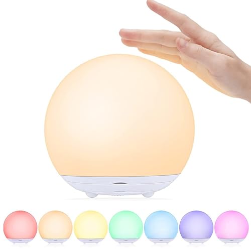 Nattlampa för barn, globformad nattlampa med beröringskontroll mjuk silikon nattlampa med varmt ljus och 7 RGB-färger som ändras USB uppladdningsbar för baby sovrum camping touch-lampa ägg nattlampa