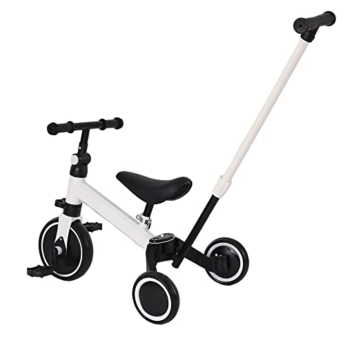 3 i 1 trehjuling barn trehjuling cykel, med Putter, förstorad kropp, vikbar trehjuling, baby trehjuling 1-4 år cykel (vit/med tryckstång)