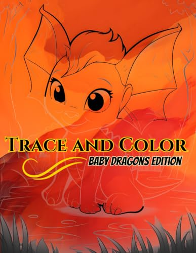 Trace and Color Baby Dragons Edition: A Magical Activity Book with 50 Light Gray Outlined Baby Dragon Designs on Vibrant Orange-Red Backgrounds – ... Coloring, and Relaxation for All Ages!
