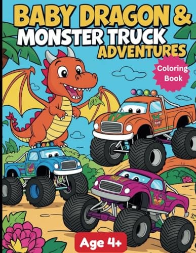 Baby Dragon and Monster Truck Adventures: Fun and Whimsical Coloring Book for Kids
