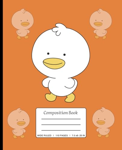 Kawaii Duck Composition Notebook – Cute Duck with Baby Ducks on Orange Background | Wide Ruled, 110 Pages, 7.5 x 9.25 in | Fun Journal for Kids & Girls