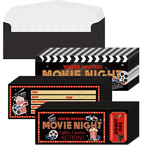 Woanger 50 Pieces Movie Party Invitations with Envelopes Movie Night Invitations Film Ticket for Birthday Baby Shower Film Night Red Carpet Party(Movie)