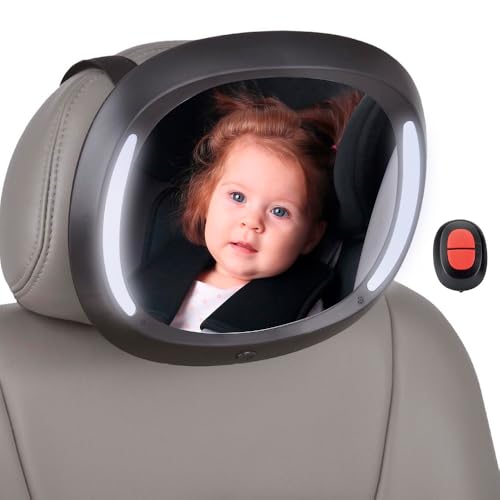 Baby bilspegel med Interbaby LED-ljus | okrossbar, 360° rotation, universell justering | Baksitsspegel för spädbarn, enkel installation, fjärrkontroll, svart