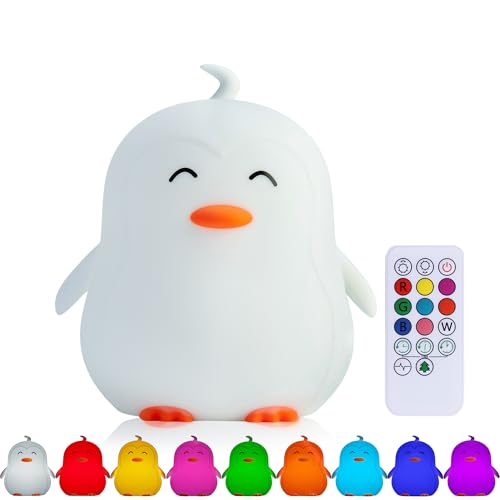 Nattlampa för Barnen med Fjärrkontroll, Touch Kontroll i 16 Färger - BONNYCO | LED Lampa med timer | Silikon Lampa 100% BPA Fri Baby | Pingvin Välkommen-Till-Världen-Present & Födelsedagspresent